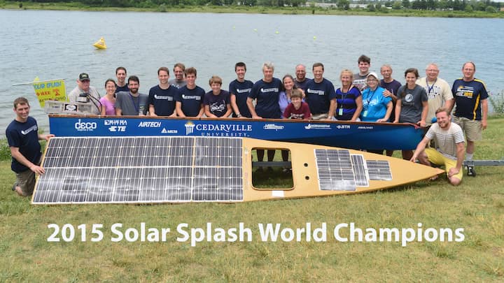 The Cedarville University Solar Boat Team is a world-class competitor, having won the Solar Splash World Championship of Solar Boating in 2016, and nine times since 2004. The team also won top university honors in the DONG Energy Solar Challenge in the Netherlands in 2012 and twice earned Honorable Mention in the Mandles Prize competition by the International Hydrofoil Society.
