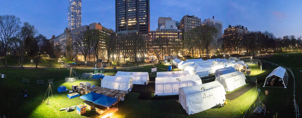 The 14-tent, 68-bed respiratory care unit, located in Central Park’s East Meadow across the street from The Mount Sinai Hospital, was designed especially for this coronavirus response. The Emergency Field Hospital included 10 ICU beds equipped with ventilators.