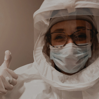 Virginia Walker in personal protective equipment